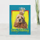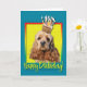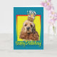Celebrate a birthday with this whimsical Cocker Spaniel Dog Greeting Card. With a cupcake balanced on it's head, this design is sure to bring a smile and giggles! BTW, This design has several versions, with different background colors. There is also an invitation to a Party version.