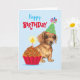 Happy birthday greetings with this cute design featuring a smiling, party hat-wearing Dachschund puppy with a birthday cupcake. Text can be easily changed; just click on customise button.