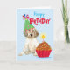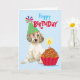 Happy birthday greetings with this cute design featuring a cute, party hat-wearing, English Setter puppy with a birthday cupcake. Text can be easily changed; just click on customise button.