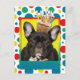 Celebrate a birthday with this whimsical French Bulldog Greeting Card. With a cupcake balanced on it's head, this design is sure to bring a smile and giggles! BTW, This design has several versions, with different background colours. There is also an invitation to a Party version.