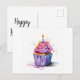 Sweet, simple, and full of charm, this postcard features a delightful watercolor illustration of a cupcake with a single candle, centred on a clean white background for a fresh, modern feel.