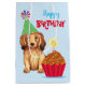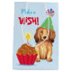 Happy birthday greetings with this cute design featuring a smiling, party hat-wearing Longhaired Dachshund puppy with a birthday cupcake. “Happy Birthday” on front and “Make a Wish!” on the back. Text can be easily changed; just click on customise button.