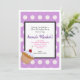 A cute pattern made up of white polka dots on a lavender purple background.. Personalise your birthday party details inside a white frame in the centre.. A cute birthday cupcakewith a cherry on top sits in the corner.
