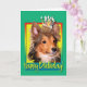 Celebrate a birthday with this whimsical Sheltie Puppy Dog Greeting Card. With a cupcake balanced on it's head, this design is sure to bring a smile and giggles! BTW, This design has several versions, with different background colours. There is also an invitation to a Party version.
