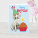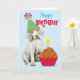 Happy birthday greetings with this cute design featuring a smiling, party hat-wearing Weimaraner puppy with a birthday cupcake. Text can be easily changed; just click on customise button.