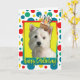 Celebrate a birthday with this whimsical West Highland Terrier Dog Greeting Card. With a cupcake balanced on it's head, this design is sure to bring a smile and giggles! BTW, This design has several versions, with different background colours. There is also an invitation to a Party version.