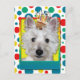 From a Customer request, this Westie named Tank is now available. This is the photo supplied from the customer that I was able to extract and place into this design. Please contact me if you would like your own Pet put into one of my designs. With a cupcake balanced on it's head, this design is sure to bring a smile and giggles! BTW, This design has several versions, with different background colours. There is also an invitation to a Party version.