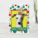 Celebrate a birthday with this whimsical Whippet Dog Greeting Card. With a cupcake balanced on it's head, this design is sure to bring a smile and giggles! BTW, This design has several versions, with different background colours. There is also an invitation to a Party version.