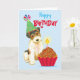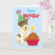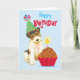 Happy birthday greetings with this cute design featuring a cute, party hat-wearing Wire Fox Terrier puppy with a birthday cupcake. Text can be easily changed; just click on customise button.