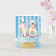 Blue decorations with a frosted cupcake with the number 16 candles lit for a birthday