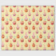 Sweet gift wrap with colourful cupcake pattern on light yellow polka dot background.