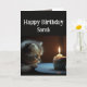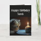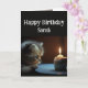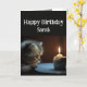 Happy Birthday Custom Name with a cute kitten staring at a cupcake and candles