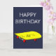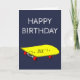 Birthday boy's name customisable cards with a cute cartoon graphic of a yellow skateboard against a customisable navy blue background. This product would suit a kid or teen skateboarder or someone who loves the sport of skateboarding