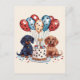 Cute illustration of Dachshund dogs dressed up for a birthday celebration. Perfect for pet lovers or dog parents!