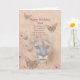 The steady green eyes of a cougar stares out of a background of muted peach and pink. Butterflies and flowers decorate the edge of the image. With the main parts of the image faded into the background, the overall appearance is soft and dreamy which is in contrast to the fierceness of the big cat. This theme of strength and gentleness is carried over into the sentiment of the inside verse which is a text template and easily changed or deleted. The front of this birthday greeting for a dad is highlighted by a Bible quote from Psalm 100:5. The butterflies and background are modified versions from Pat’s Flora and Fauna of Digital Scrap Designs.