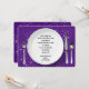 White dinner plate with silverware on on twinkling stars and purple for any age birthday dinner party invite.
