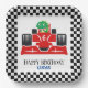Birthday Dinosaur race car red boy kid name Paper Plate