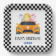 Birthday Dinosaur race car yellow boy kid name Paper Plate