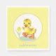 Birthday Duckling with Flower on Yellow & White Napkin