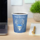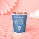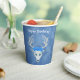 These paper cups are mix of shades of blue with a fantasy white deer head that has three blue roses and antlers on its head. Customise the Happy Birthday text with the templates on the front and back.