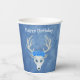 Birthday Fantasy White Deer Head Blue Roses Paper Cups