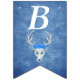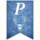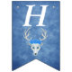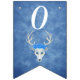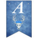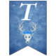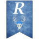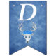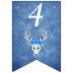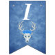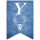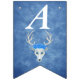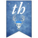 This flag shaped bunting Happy Birthday banner is a mix of misty blues with a fantasy white deer head with antlers and three pretty blue roses on its head. Customise the birthday year with the templates.