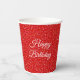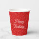 Birthday festive confetti on red glitter Paper Cups. Text can be personalised.