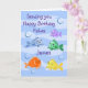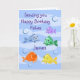 A group of happy fishes to wish you a happy birthday, can be personalized by clicking on the 'Personalize this Template' prompt.