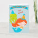 This is a colorful birthday card for kids which you may customize with a name on the front. It features a cute orange haired mermaid and a bright lime green octopus, both wearing birthday hats. At the top is a blue banner with the text Birthday Fishes in gold and pink. The text and the images are placed on a light blue background. The inside text can also be customized, and there is an additional image of a blue fish holding a red balloon. Wonderful for a little girl's birthday! *Clip art used in this design is copyrighted by Encore Software, Inc., which permits use to its licensors. All rights reserved.