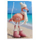 Birthday Flamingo Wearing Winter Scarf and Hat Medium Gift Bag