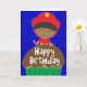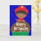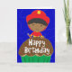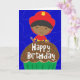 Customise the inside text! Our little firefighter friend is wishing a special little boy a happy birthday! He's wearing his red fire hat and holding his fire hose as he stands behind a huge chocolate cupcake. Card background is fun squiggles on a deep blue. Design by Bethany J. Mitchell of Darcy Place Studio.
