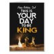 Wish your son a Happy Birthday with this unique card featuring the message, "Happy Birthday, Son! This is Your day to be King." Design includes digitally rendered gold glitter effect for the word "king" and a gold crown with jewels background. Inside includes this message but can be customised to fit your own needs: May you rule well, and may all your loyal subjects serve and honour you with large amounts of cake, ice cream, and smiles! HAPPY BIRTHDAY!