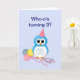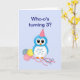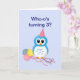 A cute cartoon owl with a party hat, and holding three pastel coloured balloons. This card has text for a three year old, but it is customisable for any age. You can add the name of the birthday child as well. The text is customisable on the entire card.