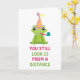 A cute frog with a birthday hat and a funny message