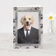 Golden retriever in a business suit in an old photo frame for birthday to anyone from the dog.
