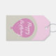 Beautiful elegant female birthday gift tag, very feminine and light in light bright pink and champagne.