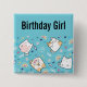 Birthday Girl Cute Kitty Cat Pattern Whimsical 15 Cm Square Badge