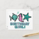 A cartoon fish, seahorse and starfish announce the presence of the birthday girl!
