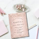 For an elegant 50th (or any age) birthday party. A rose gold faux metallic looking background. Decorated with rose gold faux glitter. Personalise and add a name and party details. The name is written with a hand lettered style script.