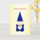 Birthday Gnome with magic lamp on light yellow background Card. Text can be personalised.
