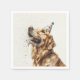 Cute cartoon illustration of Golden Retriever dog wearing a birthday hat. Perfect for pet lovers or dog parents.