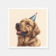Cute cartoon illustration of Golden Retriever dog wearing a birthday hat. Perfect for pet lovers or dog parents.