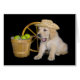 Golden Retriever puppy with green apples and wooden wheel for general birthday.