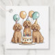 Cute cartoon illustration of Goldendoodle dogs wearing a birthday hat surrounding a birthday cake and balloons. Perfect for pet lovers or dog parents.