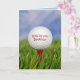 Close up of golf ball on red tee in green grass for Brother's birthday.