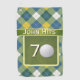 Celebrate a milestone in style with this elegant birthday golf-themed design—perfect for honoring memories with a fun, sophisticated design guests will love. Featuring a golf ball, banner and fun party font. Gold, blue and green plaid outline frames the golf themed design.