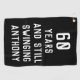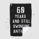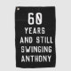 60 years and still swinging, funny 60th birthday quote golf towel. Perfect for dad, grandad, stepdad. Golfer gift idea. You can personalise the year and name.