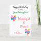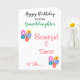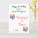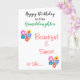 Granddaughter birthday wishes. Personalise for anyone. Granddaughter is written in green script. Beautiful and sweet is she is written on frontside in red script. Pretty brightly coloured flowers in pink blue yellow green orange against white background. Leave special message inside, or personalise. Original Artwork and Card Verse Design © TamiraZDesigns