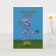 A fantasy image highlighted by purple sweet pea flowers with little faces watching two hovering monarch butterflies makes a colourful and whimsical birthday card. Customise by changing the inside verse to anything you want.