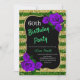 Birthday Green Gold Stripes Glitter Purple Roses Invitation